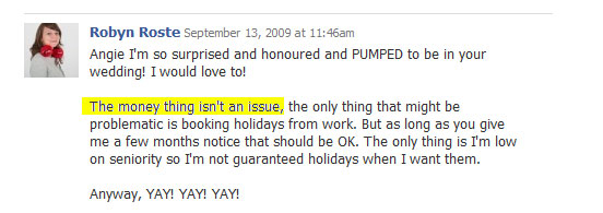 In September 2009 I received an email from Angie asking if I’d consider being one of her bridesmaids. After careful consideration (two days) I wrote this: